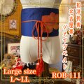名古屋帯 リメイク サッシュベルト 飾り帯 和洋折衷 ハンドメイド L〜LL対応 群青を裂く、一輪の熾火。 ROB-111