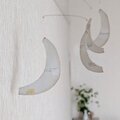 紙を重ね、アンティーク加工とコラージュで仕上げた、やさしいたたずまいのモビールです。