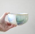 涼やかブルーグリーン にじみ模様の丸鉢 白釉