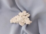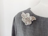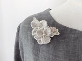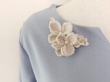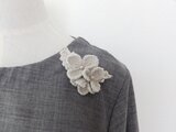 色はごくごく淡いグレーで、花の中心にグレー系のコットンパールを付けました。