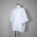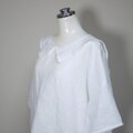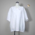 リネン◆ひらっとカラーのロングセーラーブラウス 半袖◆オフホワイト◆フリーサイズ(中厚、リネン100%)