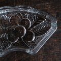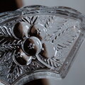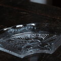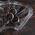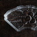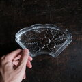 お刺身を乗せたくなる◆果実とリーフ。クリスタル・プレスガラス変形皿 向付 古民家 古道具 昭和後期
