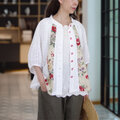 [予約販売] リネンフラワーとレース袖のダブルガーゼドルマン羽織りブラウス