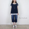 ・袖:ボーダーカットソー(ネイビー×オフホワイト)