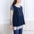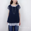 ネイビーのカットソーに、ボーダー柄の袖を合わせた