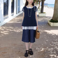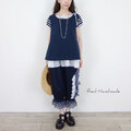 [Coordinate] リネンパッチティアードスカート☆ネイビーブルー