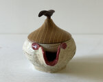 小壺型・銀彩・蓋物なんて可愛らしいフタモノなのでしょう。ひとつひとつ違っていて選ぶのも楽しかったです。 色味もカタチも木と器のコラボも最高なので、ちっちゃいけれどテーブルの主役に大抜てき!(他は何も置かない様にガンバります。) 個包装のあめちゃん10個入りました。 素敵なフタモノに、出会えて良かった! ありがとうございました。