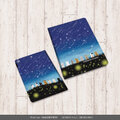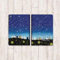手帳型 iPadケース 両面印刷(カメラ穴あり/はめ込みタイプ)【ほのぼのにゃんこ(流れ星と蛍火)】