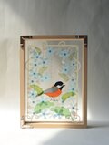 涼しげなブルーの花、ブルースターと小鳥のヤマガラをデザインして、切り絵にしました。