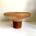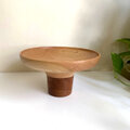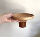 高さのあるうつわです。色の濃いケヤキの高台がしっかりとお皿を支えるデザイン。