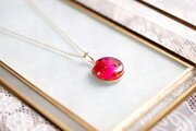 滲んだ数種類の赤とピンクが妖艶で鮮やかで、セクシーなペンダント。