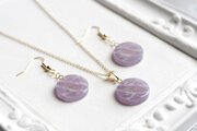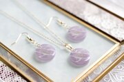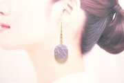 半透明の紫にラメを乗せ、水面のような模様を描いた、優しく淑やかなピアス。
