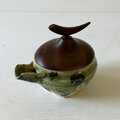 想像力に挑戦出来る様な素晴らしい作品でした. モクの蓋と陶器の色の組み合わせのセンスが抜群でした. 素敵な逸品です。