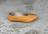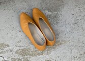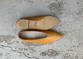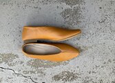 装いにやさしい彩りを。キャメルレザーのVカットパンプス