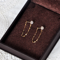 フロントからはピンタイプの小さなゴールドボールが、後ろ姿には華奢に揺れるチェーンの存在感が。