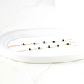 艶やかにカットが施されたブラックスピネルをリズムよく連ねた、華奢で上品なロングピアス。