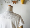 いつも感心するのは、どの作品もデザインが可愛く着こごち満点であり、襟ぐりの締め付け感は全くないのは言うまでもなく、襟まわりの開きの具合の可愛さ、上品さのバランスが絶妙に素晴らしいところです。仕立てに技ありですね!
