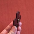 裏側は小さなウッドボタンが付いています。革の厚みがあり断面は丁寧に磨いています。