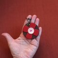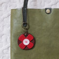 ■イタリアンレザー円型、十字型パーツとフランス製の貝ボタンを組み合わせて作りました。裏側にはイタリアンレザーの小さな円パーツが付いています。革の厚みがあり断面は丁寧に磨いています。