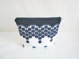 #レース #花 #花柄 #マチ付き #夏 #レース #リボン #紺 #ネイビー #スカラップ #かわいい #刺繍 #内ポケット付き