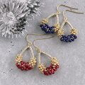 ラメ糸が煌めく細身のフレームに色、大きさの異なる2種のビーズをボリューミーに纏わせた雫型ピアス。
