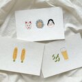 消しゴム版画のイラストで、ひとつひとつ手捺ししています