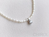 ★淡水パールとキュービックジルコニアのチャームを中央に入れたて作った華奢でもキラキラな可愛いネックレスです。淡水パールは極小ですが艶照りがよく存在感はあります。