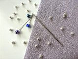 紫と青のストライプ模様のとんぼ玉でかんざしを制作しました。