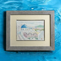 青い屋根、白い町並み、ギリシャ、サントリーニ島の風景です。