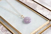 半透明の紫にラメを乗せ、水面のような模様を描いた、優しく淑やかなペンダント。