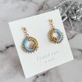 発色の良い日本製の刺繍糸とゴールドカラーのラメ糸、小さなビーズで仕上げたピアス。