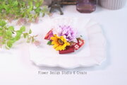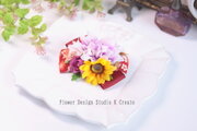 浴衣・着物髪飾りに♡パープルのダリアと向日葵の和風ヘアクリップ 和風 浴衣 七五三 浴衣 髪飾り ヘアクリップ バラ 向日葵 花