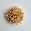 花はつまみ細工の技法を用いて、柔らかく光沢のあるイエロー、オレンジ、クリームホワイトの布を組み合わせて制作しています。