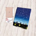 手帳型iPadケース【バックカバー:ソフトタイプ】片面印刷/カメラ穴有【ほのぼのにゃんこ(流れ星と蛍火)】