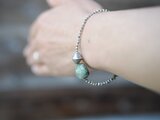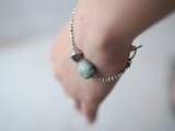 円錐形のシルバービーズと共に散りばめ、細かな凹凸のシルバーラインでブレスレットに仕立てました。