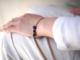 3粒のスギライトとカレンシルバーを組み合わせ、カジュアルに使える編み紐ブレスレットに仕立てました。