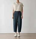 本ポロ+リネン素材のワイドパンツ+ローファー