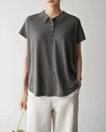通気性抜群 シワになりにくい 夏用ニットポロシャツ 半袖ニット ダークグレー 250611-2
