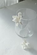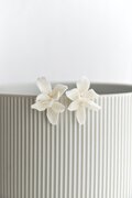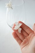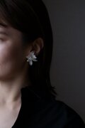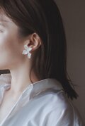 一重咲きのクチナシの花をイメージし、ポリマークレイで花びら一枚ずつ手作りしたピアス。たおやかにそして立体的に広がる花びらは、透け感が美しくあたたかみのあるオフホワイト。センターには小さな淡水パールをあしらい、大人の優雅な雰囲気を演出します。