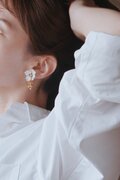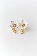 ポリマークレイで手作りした花にビンテージ感のあるゴールドペイントを施し、アクセントに淡水パールをプラス。つぶつぶの実や葉をイメージしワイヤーで編んだガラスビーズは、短いチェーンでつないでいるため揺れ感が楽しめます。また、取りはずしてワンポイントピアスとしてもお使いいただます。