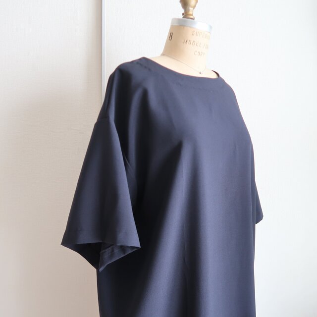 1枚で軽快&しわにならない★マキシ丈ワンピース★ネイビー・着心地楽々・オケージョン・イージーケア・綺麗め
