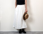 リトアニアのヘリンボーン柄麻でタックギャザースカートを作りました。