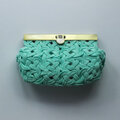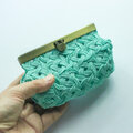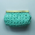 日本の伝統工芸「水引細工」の“あわじ結び”で、全面が結ばれたがま口ポーチです。