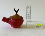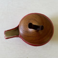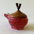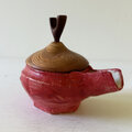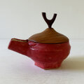 少し長めの注ぎ口、鮮やかな赤色、高台の六角形がポイントの器です。