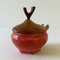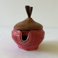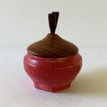小壺型・銀彩・蓋物なんて可愛らしいフタモノなのでしょう。ひとつひとつ違っていて選ぶのも楽しかったです。 色味もカタチも木と器のコラボも最高なので、ちっちゃいけれどテーブルの主役に大抜てき!(他は何も置かない様にガンバります。) 個包装のあめちゃん10個入りました。 素敵なフタモノに、出会えて良かった! ありがとうございました。