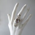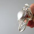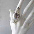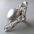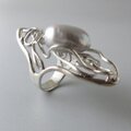 大粒パールを幅広のベースに載せたシルバーリングです。