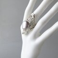 瑞々しいブルー、そしてカットがとても美しいトパーズを、優しく葉で包み込んでいるデザインです。 燻加工で葉の陰影も美しく、とても美しいリングでした。