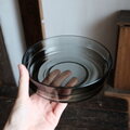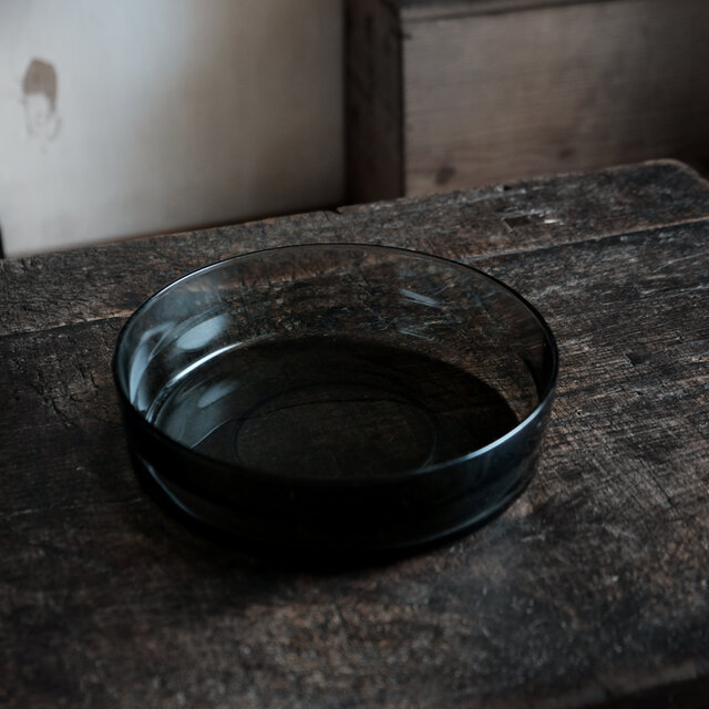 スモーキーブラックな色味◆昭和後期 プレスガラス浅型平鉢 皿 暮らしに インテリア 古民家
