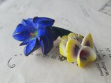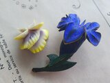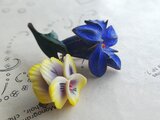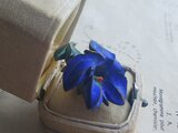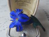 1930-40年代ヴィンテージ、古い時代の青いリンドウのお花のブローチです。