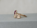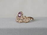 ルースを包み込むのは、繊細なねじり模様が這うように施されたツイストシャトン。